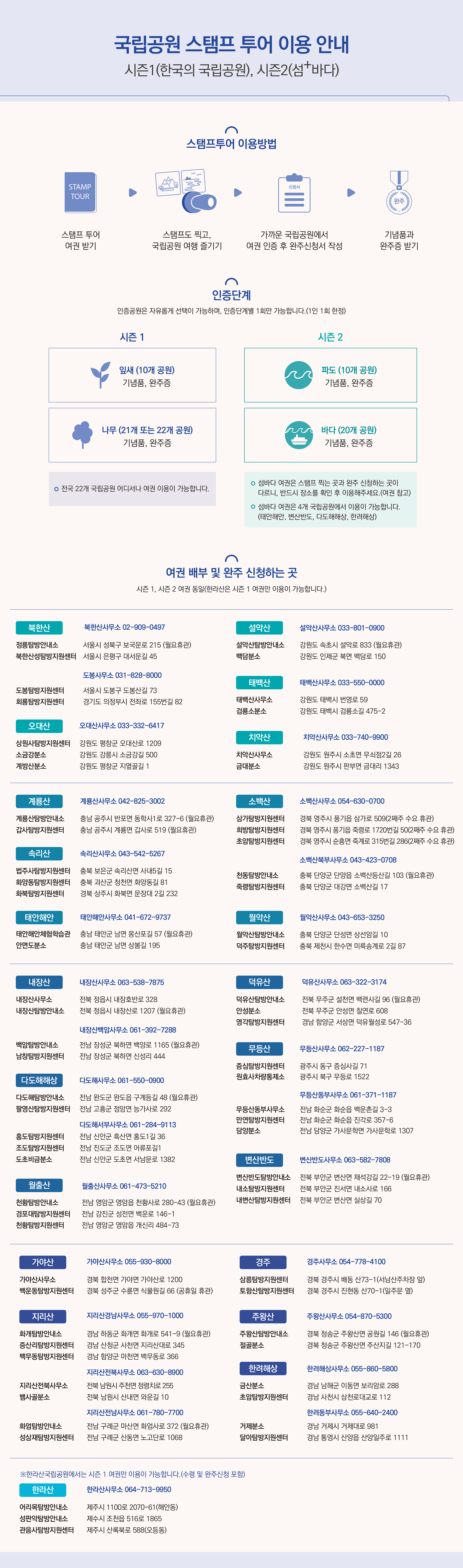 국립공원 스탬프 투어 이용 안내 국립공원 스탬프 투어 여권 배부는 한정적이고 인기가 많은 프로그램입니다.